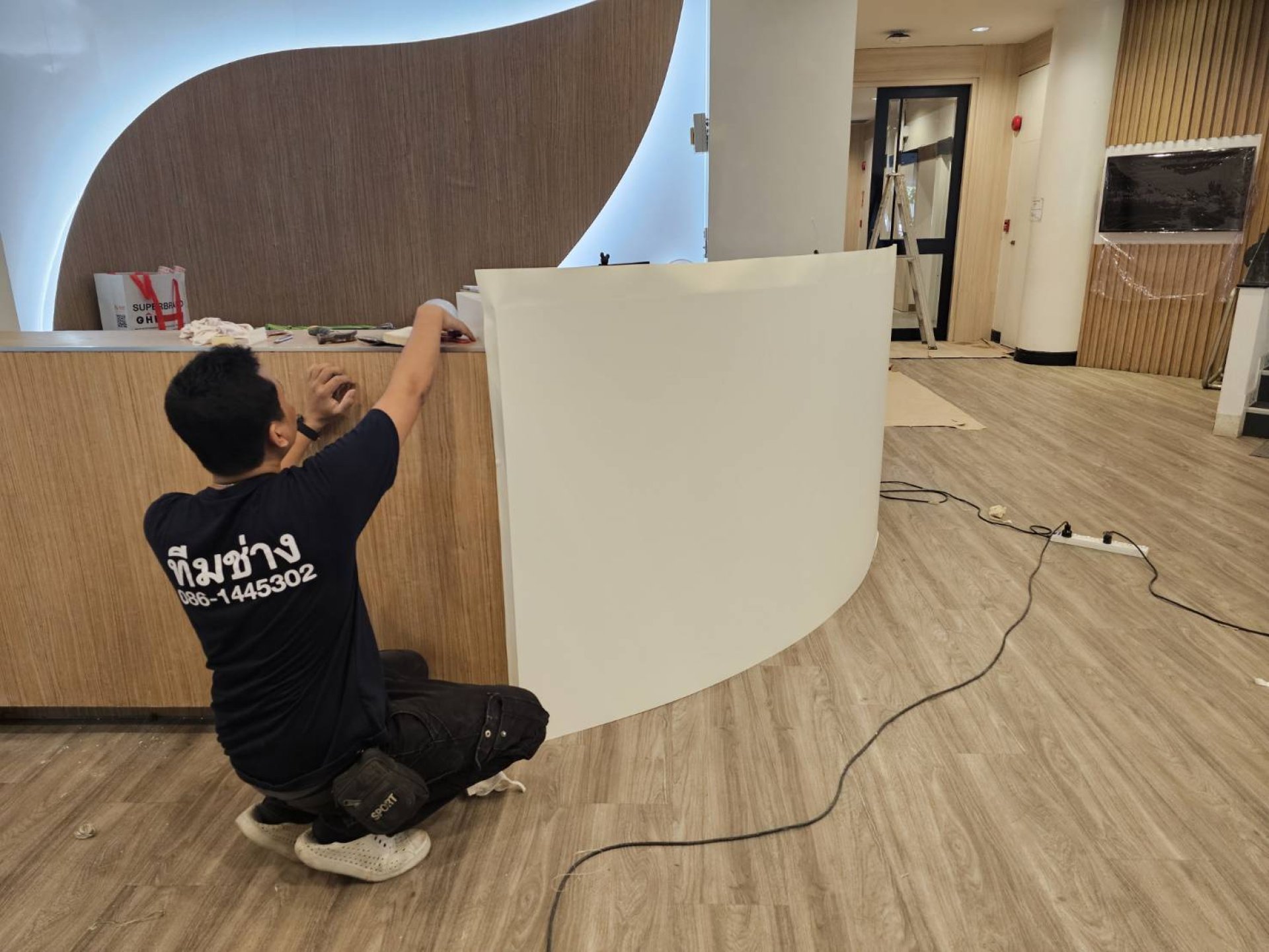 งานปิดผิวเฟอร์นิเจอร์ตกแต่งภายใน อาคารสำนักงานด้วยฟิล์มสีพื้นรหัส PS130
