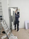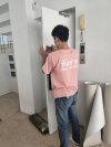 ปิดผิวเฟอร์นิเจอร์ บริเวณภายในและประตูลิฟต์โดยสารอาคารบ้านพักอาศัย ด้วยฟิล์มรหัส PS080 และ PS083 ลายไม้สีขาว และลายไม้สีครีม