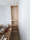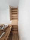 งานปิดผิวเฟอร์นิเจอร์เฉพาะส่วนด้านในด้วยฟิล์มลายไม้รหัส PW1117-1 ด้านในเฟอร์นิเจอร์เดิม ภายในคอนโดบริเวณห้องนอน ห้องนั่งเล่น และห้องรับแขก