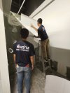 งานปิดผิวเฟอร์นิเจอร์ ร้าน Photoism ในห้างสรรพสินค้า ด้วยฟิล์มปิดผิวเฟอร์นิเจอร์ สีขาว PS010 สีฟ้า PS029 และ แฮร์ไลน์สีเทา PME315