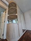 งานปิดผิวเฟอร์นิเจอร์ด้วยฟิล์มลายไม้ รหัส PW965 ปิดทับผิวเฟอร์นิเจอร์เดิม โดยไม้ต้องรื้อผิวเดิมออก ข้อดีคือไม่มีฝุ่น และกลิ่นรบกวนระหว่างงานติดตั้ง สามารถเลือกติดตั้งได้ทั้งแบบ เฉพาะด้านนอก หรือ ทั้งด้านนอก และด้านใน ของเฟอร์นิเจอร์