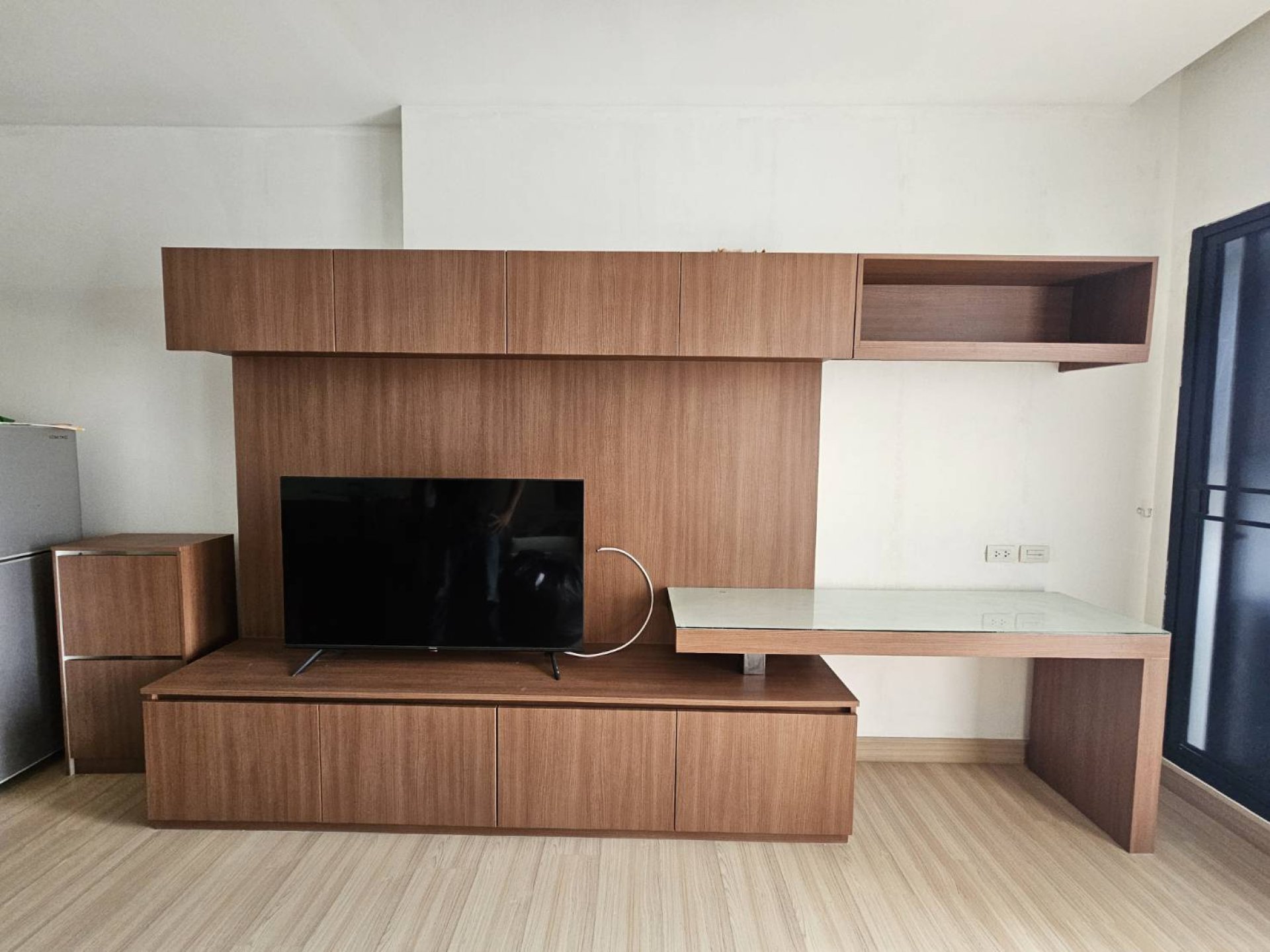 ปิดผิวเฟอร์นิเจอร์ห้องพักในโครงการ Urbana Sathorn ด้วยฟิล์มปิดผิวเฟอร์นิเจอร์ลายไม้รหัส PW900 แบรนด์ Younglim บริเวณชั้นวางทีวี และตู้ข้างเตียง โดยฟิล์มสามารถปิดทับผิวเฟอร์นิเจอร์เดิมได้เลยโดยไม่ต้องรื้อผิวเดิมออก